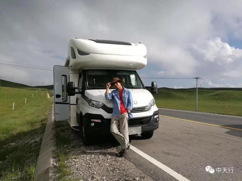 看上圖這位帥哥很會擺pose嘛,看這車前臉造型小編就知道他開的是進口依維柯房車啦,說真的自進入青海后,不管走哪一路都是美景,讓人都情不自禁的停下拍照留念!小編我甚至就想躺草地上不走了^_^