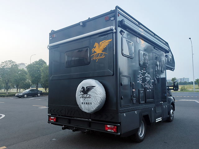 外觀上與霍夫勒黑金剛系列車型保持一致,三明治式復合車身結構,全鋁車身+全鋁裙邊,搭配高強度航空鋁板外墻板,保證車體的穩固性和防腐性。值得關注的是,該車車身外側配備了電動遮陽棚、戶外廚房、戶外折疊板、電動踏步、前雷達防撞系統、前后測高攝像頭、后拖車鉤、2點電動支腿等。