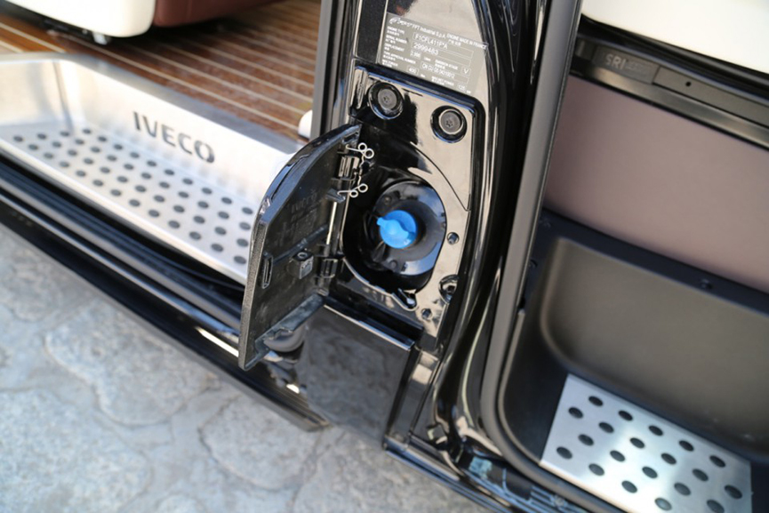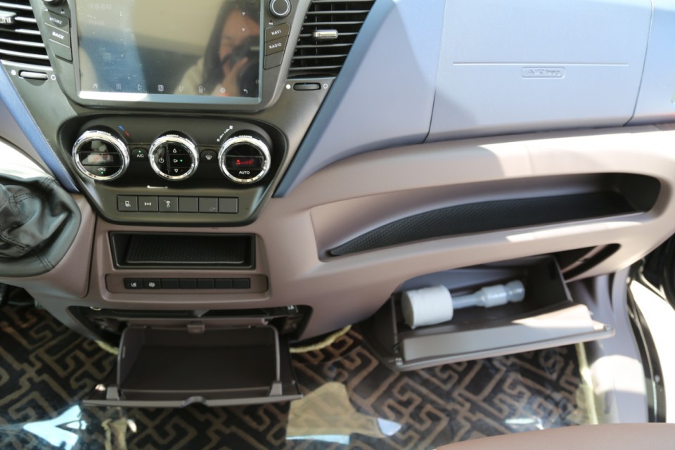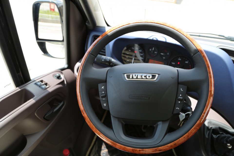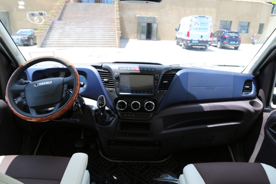 進口依維柯B型房車在原有New Daily的駕駛室基礎上進行了一些內飾升級,升級的多功能桃木方向盤更具精致感,方向盤兩側的多功能按鍵非常實用,可控制多媒體系統及藍牙電話。
