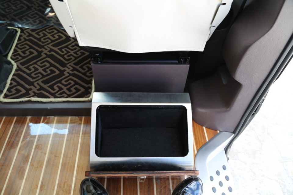 作為高端商務車怎能缺少辦公座板,此車采用電動隱藏式折疊桌板,節約空間的同時也非常方便。