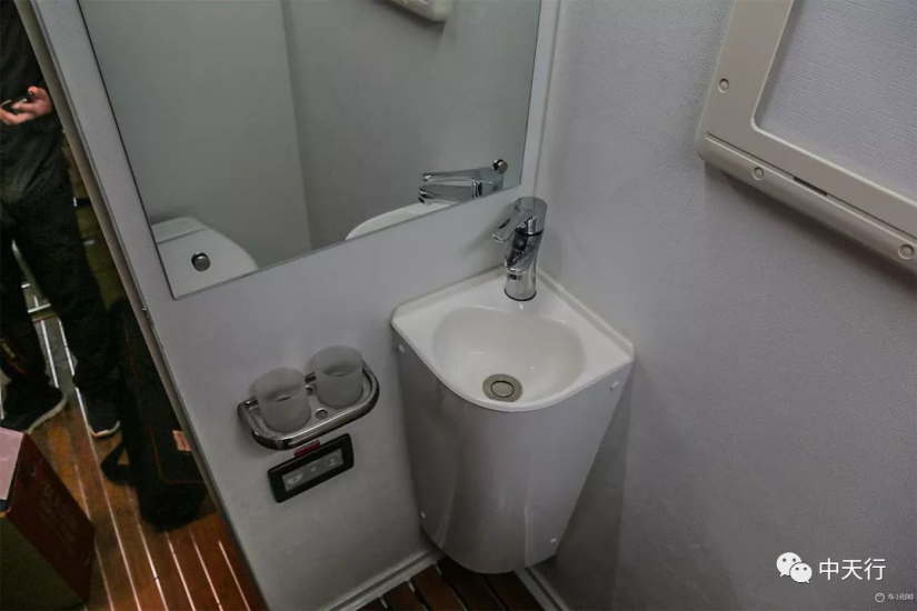 一間看似小小的衛(wèi)生間,內(nèi)部除了馬桶之外卻還配有洗浴功能,整個衛(wèi)生間內(nèi)部的空間相對來說算寬敞,相比飛機上的衛(wèi)生間要“豪華”不少。