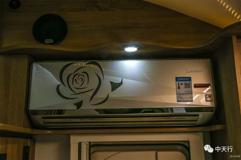 車內(nèi)提供了兩套制冷系統(tǒng),分別是外掛空調(diào)(用于駐車時使用)和進口依維柯房車底盤車輛自帶的行車空調(diào),為了解決后車廂制冷的問題,該車增加了一個單獨的風機,用于輔助降溫。供熱系統(tǒng)除了車載空調(diào)之外還配有“地暖”和燃油加熱器,在行車過車中利用發(fā)動機散熱可以加熱位于車廂地板下方的水箱,形成類似于地暖的裝置,在駐車時還可以使用燃油加熱器供熱,柴油消耗量約每天2.5L。