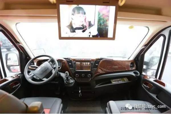 駕駛室的中控臺(tái)進(jìn)行了仿木制設(shè)計(jì),中控區(qū)依然集成車載導(dǎo)航、倒車影像和倒車?yán)走_(dá)系統(tǒng),可輕松掌握不同路況。駕駛室上方為17寸折疊吸頂電視,可在會(huì)客廳觀看,非常方便。帶加熱功能的空氣懸掛三向調(diào)節(jié)主副駕座椅是進(jìn)口依維柯B型房車的獨(dú)有特色。