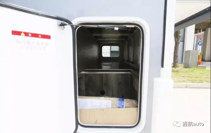 車尾則為貫通式的儲物艙,可以塞下很多東西,如果你有計劃來一次類似于亞歐之旅的長途旅行的話,那么在選擇房車時,一定要選擇一款帶貫通式儲物艙的房車。