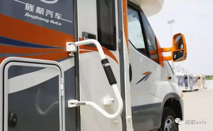 常規的功能不必多講,主要聊一些能夠讓人眼前一亮的設計,首先,就是安裝了菲亞瑪的外置扶手,該扶手有兩個功能,既可以當乘客上下的扶手,在旋轉扣至車門上之后,又可以當防盜鎖,安全性大大提升。